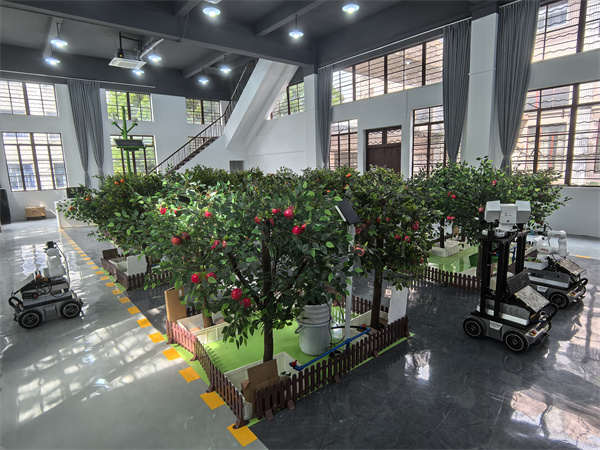 在智能机器人训练区,学生置身于模拟的“智慧果园”场景之中。通过分组参与智能采摘与巡检项目,学生亲身体验机器人导航、AI果实识别、机械臂控制等前沿技术。在实践中,学生不仅能掌握智能机器人的核心技术原理,更能深刻理解其在现代农业中的广泛应用前景,体验科技赋能农业生产的魅力。